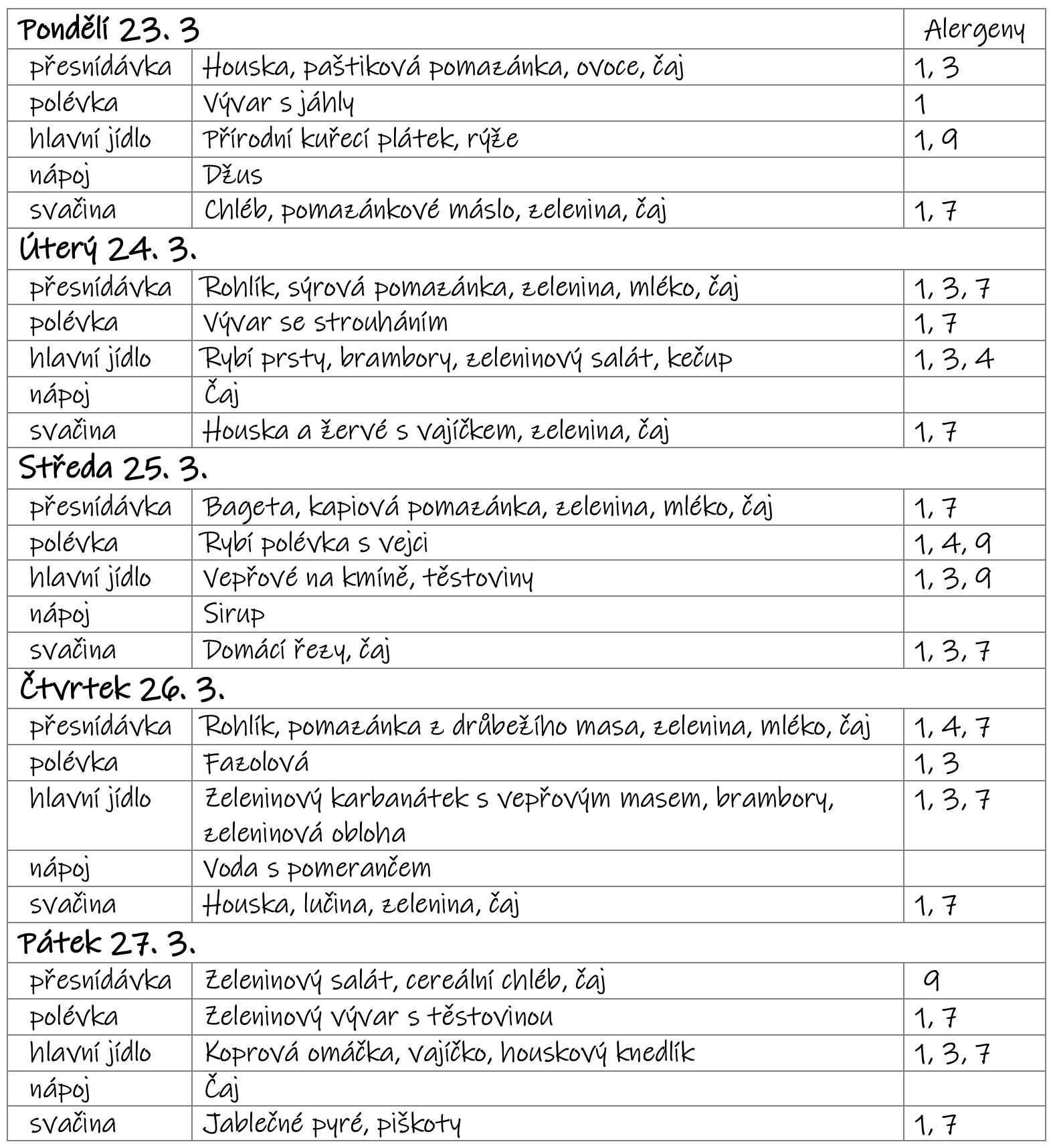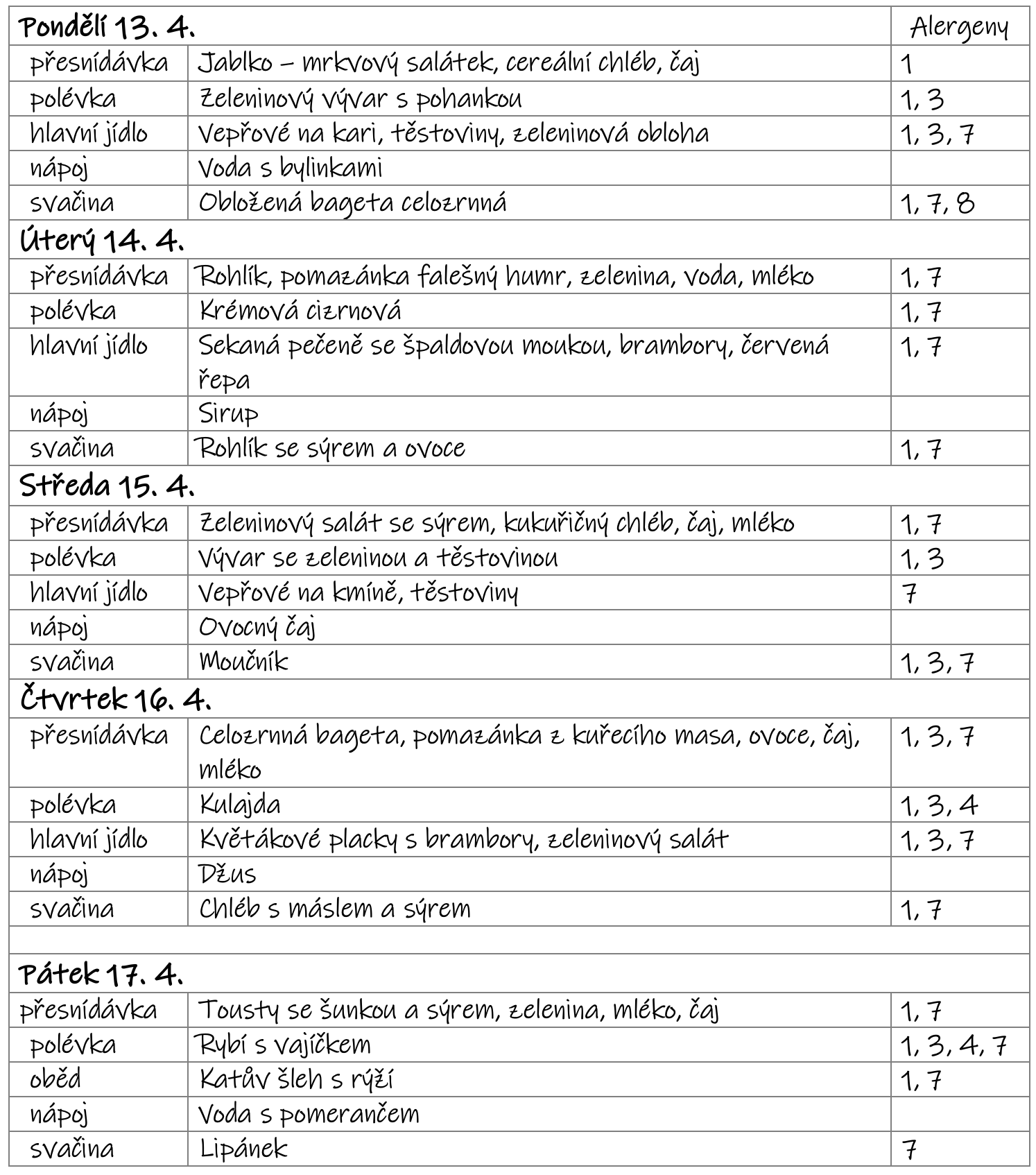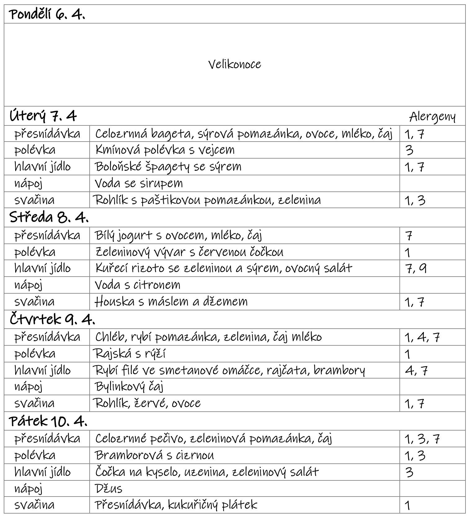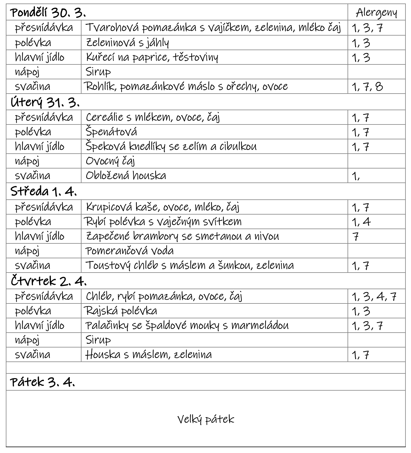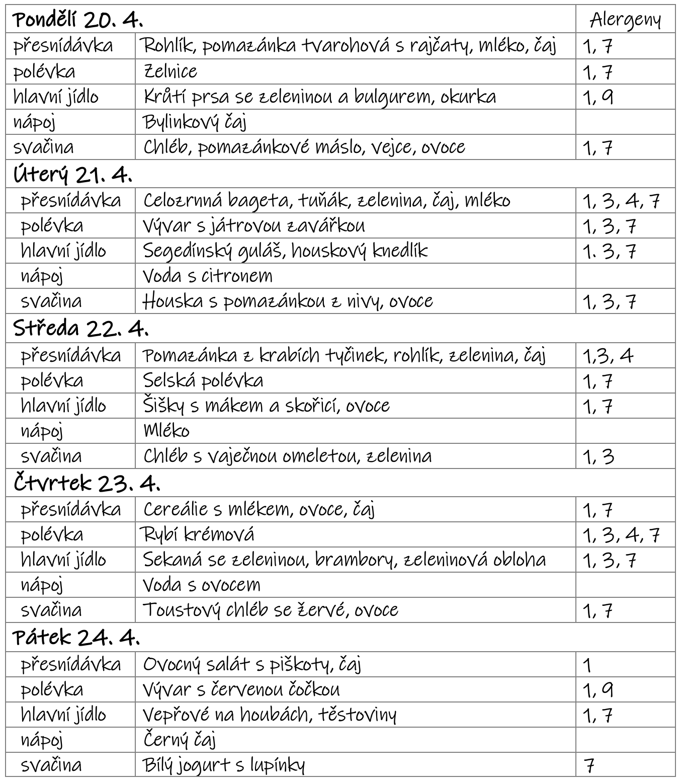 Změna jídelního lístku vyhrazena - v letním týdnu se může jídelníček změnit v závislosti na aktuálním počtu dětí.