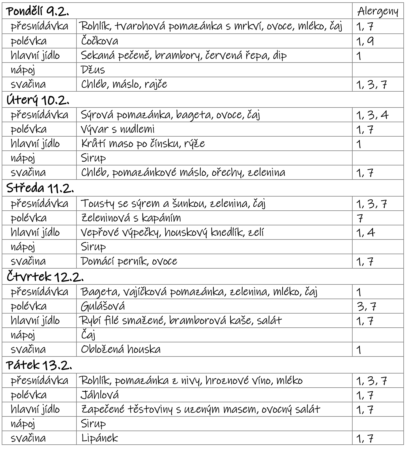 Změna jídelního lístku vyhrazena - v letním týdnu se může jídelníček změnit v závislosti na aktuálním počtu dětí.